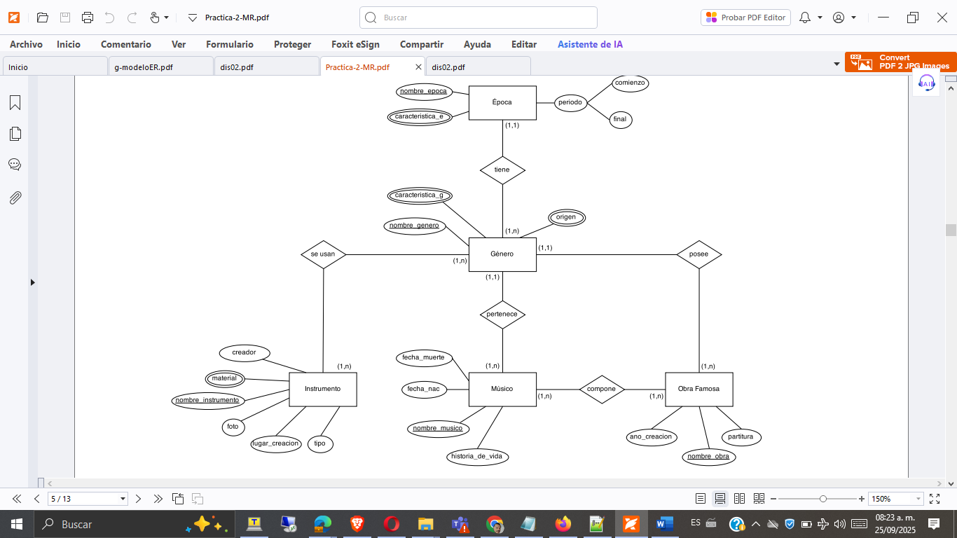 Del diagrama e-r de la actividad 9 historia de la musica , pásalo a diagrama relacional , tomando en cuenta las 3 reglas de integridad , en tu libreta
